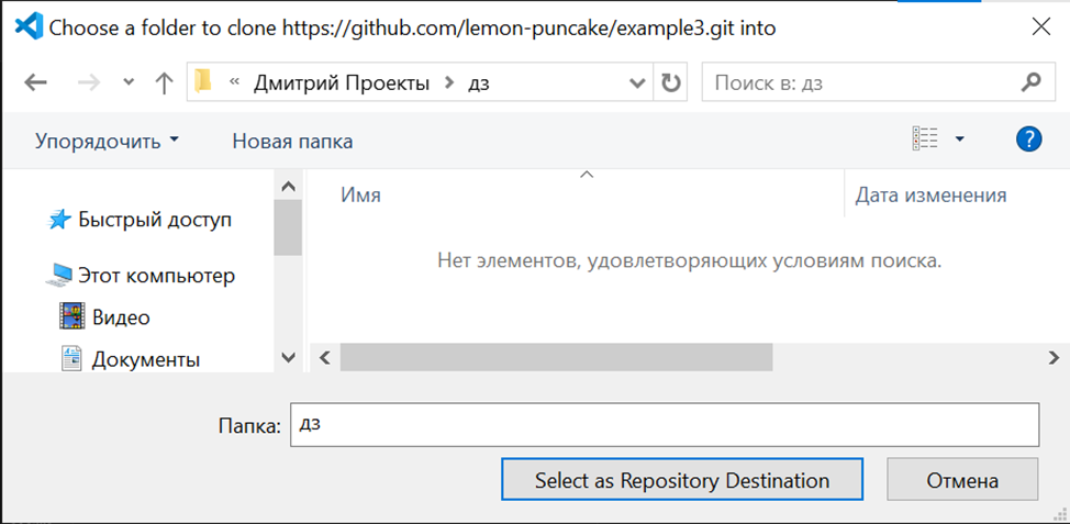 3. Выбираем папку, куда будет клонироваться репозиторий